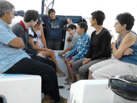 Mais ce soir nous fêtons cette remise à l’eau avec une sardinade au ras de l’eau sur la plage du chantier où chaque déchet ramassé pour mettre au propre un espace pour manger, rappelle les heures d’ouvrage et les kilos d’Epoxy qui maquillent aujourd’hui le bateau : fonds de fût en plastique que Ikea pourrait bien détourner en abat-jour , monceaux de bout de CP (contre plaqué) de toute les épaisseurs, plastiques, bouteilles cassées, ferrailles etc…Nous y avons trouvé deux équipées pour le carré et de quoi faire des tringles dans les placards.