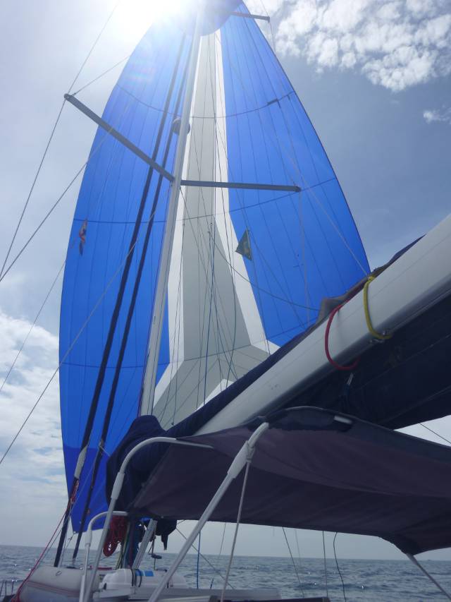 Pluies la veille, pas de courses et absence de provisions sérieuses à bord Ouverture du spi pour 5 mn